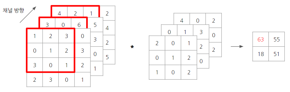 3차원 합성곱 연산을 단순화하면 아래와 같은 그림처럼 나타낼 수 있습니다.