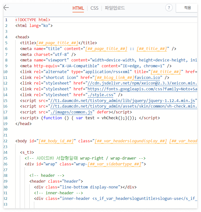 1. 티스토리 [블로그 관리] → [스킨 편집] → [html 편집] 접속