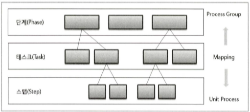 - 프로세스 그룹을 통하여 완성된 단계별 산출물 생성