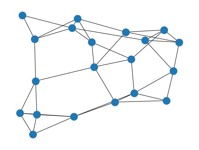 G = nx.watts_strogatz_graph(n=20, k=5, p=0.2) # n: 노드 개수, k: 이웃 노드 개수(n의 절반보다 작아야 함), p: 재배선 확률(0~1)